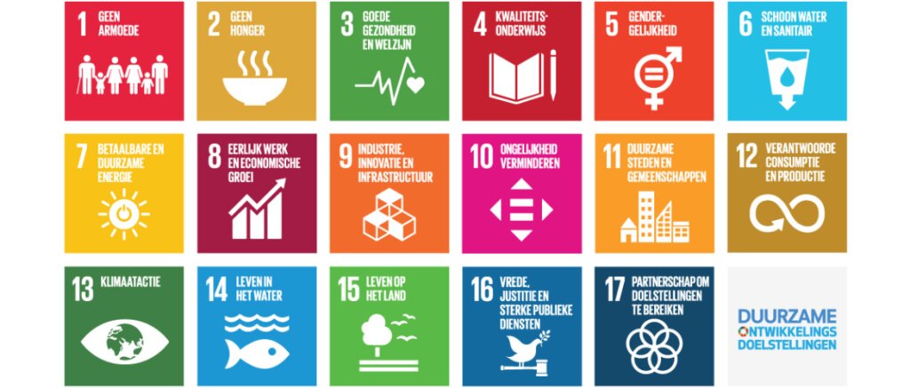 Willen we toe naar een betere wereld en de duurzaamheidsdoelstellingen in 2030 halen, dan moet er nog een hoop gebeuren. Daarom staken overheden, maatschappelijke organisaties en het bedrijfsleven in 2015 de koppen bij elkaar om concrete doelen te stellen. Dat zijn 17 Sustainable Development Goals (SDG’s) geworden, met onderliggende subdoelen.